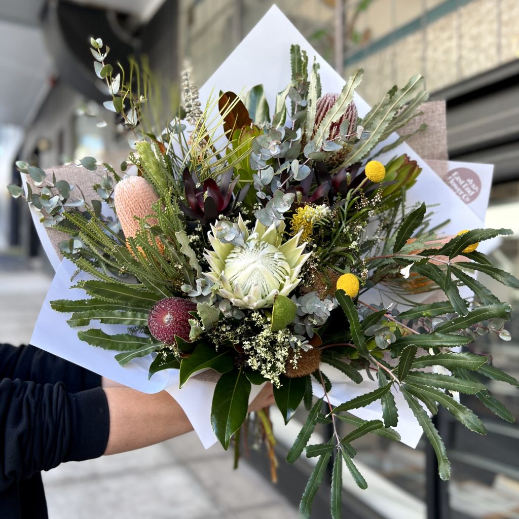 Our florists understand that native flowers have their own language – they’re not meant to be tamed into traditional arrangements. Instead, we let their natural forms shine, creating compositions that feel both wild and sophisticated. Whether you’re looking to buy native flowers for a special occasion or simply want to bring the beauty of the Australian landscape indoors, our native arrangements celebrate the unique textures, colours, and forms that make these flowers so extraordinary.