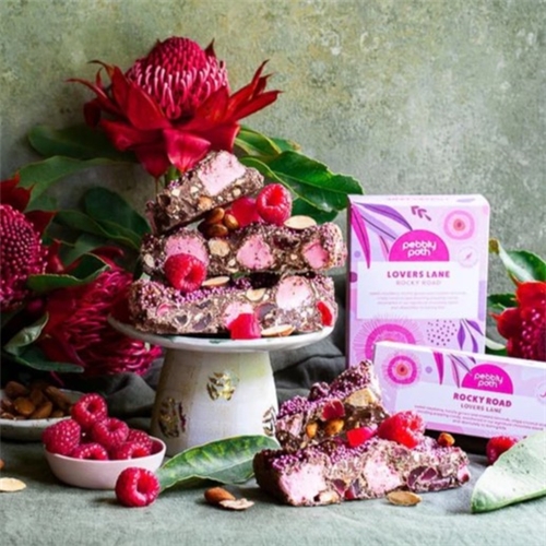Lovers Lane is bursting with luscious raspberry lollies, fluffy raspberry marshmallow, toasted coconut, freshly roasted almonds from 'Outback Almonds' on the Darling River, peanut chunks and the added surprise of popping candy – this rocky road is as exciting as it is delicious.
